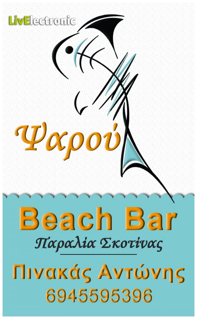 Δημιουργία λογÏŒτυπου και εταιρικής κάρτας για το Beach Bar "ΨαροÏ" στην Σκοτίνα Πιερίας.